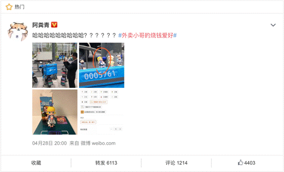 近日,微博上更有一名外卖小哥意外走红,其配送车上放置了一排泡泡玛特,其中还有一款极其难抽以及不便宜的隐藏款,眼尖的网友发现后纷纷表示,“外卖小哥和萌娃竟然有种反差萌”,“原来不止我一个男生喜欢这些可爱的娃娃!”……可见,泡泡玛特以其丰富的产品线连接了一大批不同职业同样爱好的男性粉丝。